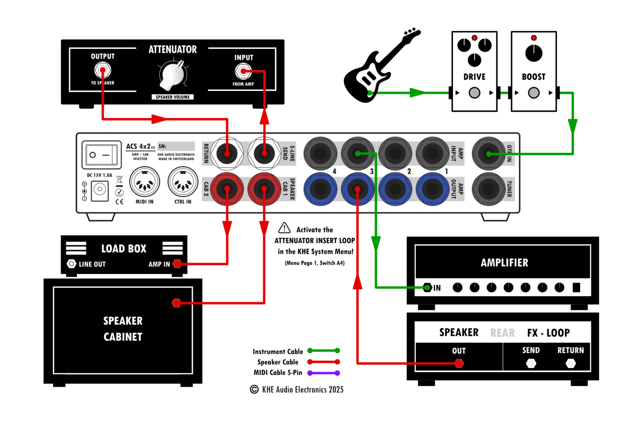 Attenuator Insert Loop - Share s single attenuator with all amps and cabs. The attenuator loop must be activated in the ACS System Menu (more info here)